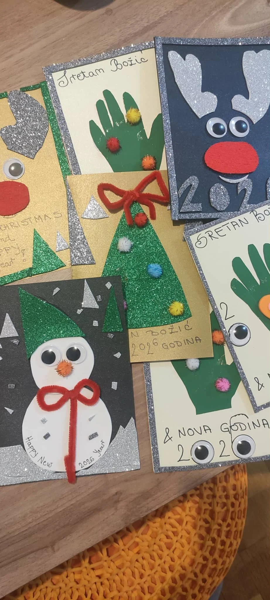 Ovaj dio godine me posebno inspiriše na čestitke - na zahvalnosti koje zapišeš rukom dragim ljudima koji su ti obilježili godinu. Ove godine to je još ljepše, jer ih po prvi put ne izrađujem sama. Tu je i moj mali pomagač – Mila. Zajedno „bacamo“ ideje a potom pravimo čestitke u etapama. Kada se umori, napravimo pauzu ili nastavimo sutra. I tako, malo po malo, nastaju naše male kreacije.