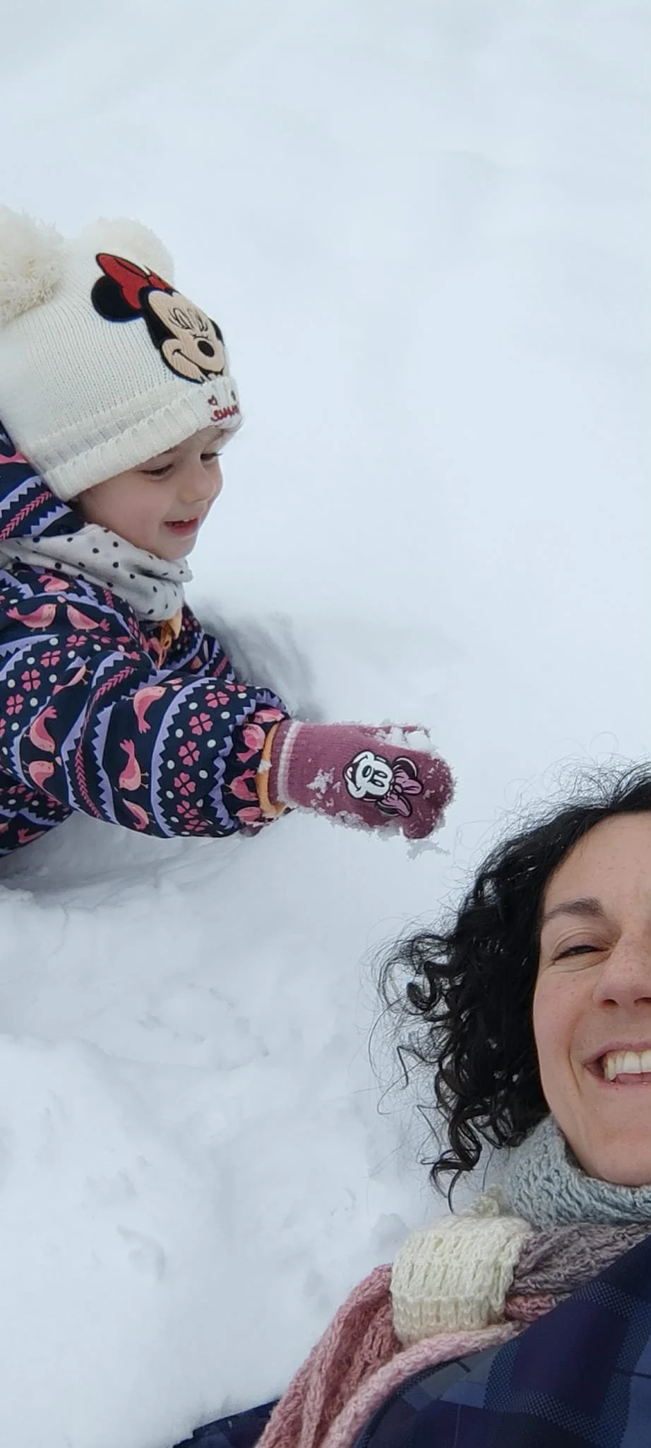 Ovog vikenda, kada sam izašla sa Milom, sve je bilo drugačije nego u mom djetinjstvu – ali opet nekako čarobno. Svaka generacija ima svoje iskustvo ali neke stvari se ne mijenjaju. Istraživala je snijeg, podizala glavicu da joj pahulje dodirnu lice. Nisam joj govorila kako je hladno niti da pazi da se ne smoči – htjela sam ju posmatrati i da osjeti slobodu i ljepotu trenutka. Držale smo se za ruku, trčale kroz prilično visok snijeg a onda bismo se poskliznule. Cika i smijeh pratili su svaki naš „pad“. Crveni obraščići, smrznute ručice – novo iskustvo.